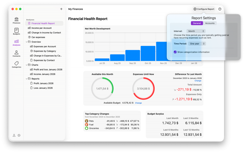 Also new: The Account Reports are now interactive. For any selected range, the corresponding transactions can be displayed directly—from high-level overview down to individual details, without any context switching. Numerous further improvements ensure noticeably smoother performance, even with large data sets.