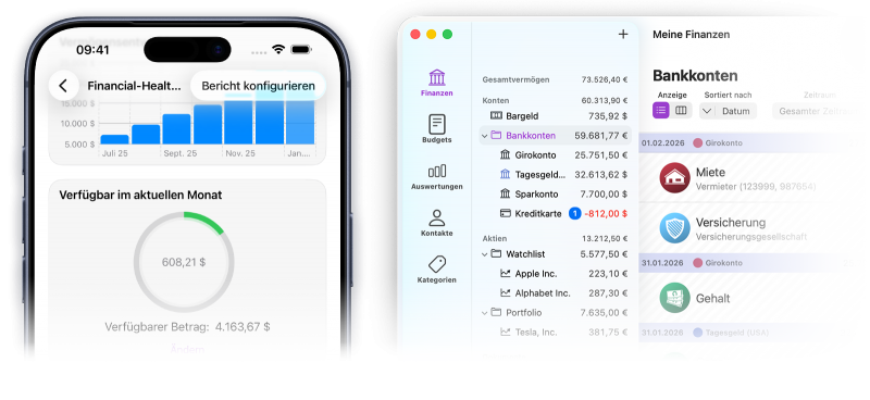 You haven’t upgraded to iFinance 5 yet? Purchase iFinance 5 for only US$39.99 on the App Store. On Mac, you’ll need macOS 10.15 Catalina or later – on iPhone and iPad, it’s iOS 14 or later. The purchase always includes all versions for Mac, iPhone, and iPad. Please note that transaction retrieval by connecting to your bank requires a paid subscription.